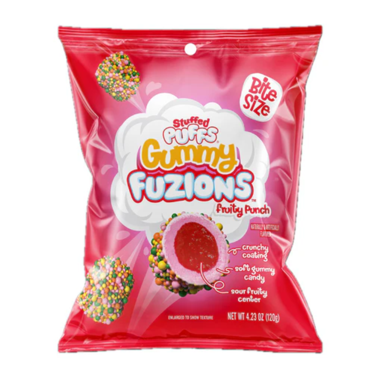 Turn up the heat on snack time with Stuffed Puffs Chili Mango Gummy Fuzions. These bold, bite-sized treats start with a fiery chili-spiced coating, followed by a chewy gummy layer, and finish with a tangy, tropical mango center for the ultimate spicy-sweet experience. Perfect for adventurous candy lovers, this unique flavor fusion delivers a satisfying kick with every bite.