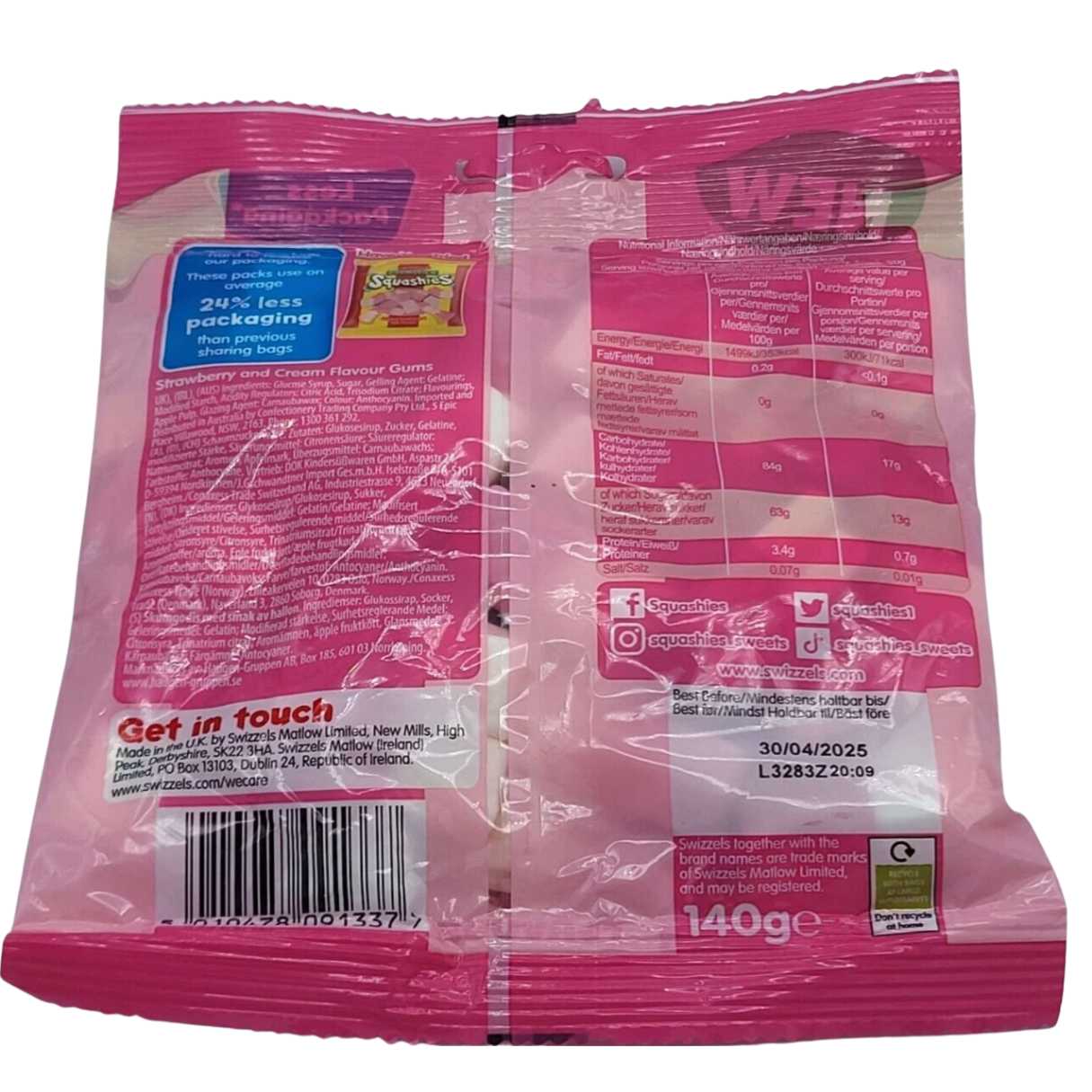 Bring classic British candy delight to your shelves with Swizzles Squashies Strawberry and Cream 140g – 12ct. These soft, chewy treats combine the nostalgic flavor duo of sweet strawberry and smooth cream for a perfectly balanced, melt-in-your-mouth experience. Made by the iconic Swizzles brand, Squashies are loved for their fun texture, vibrant taste, and shareable format. Each 140g bag is packed with fruity, flavorful pieces that appeal to kids, teens, and adults alike. Ideal for retail, confectionery aisles, gift baskets, party bags, or everyday snacking. With 12 bags per case, this wholesale pack ensures you stay stocked with a proven customer favorite.