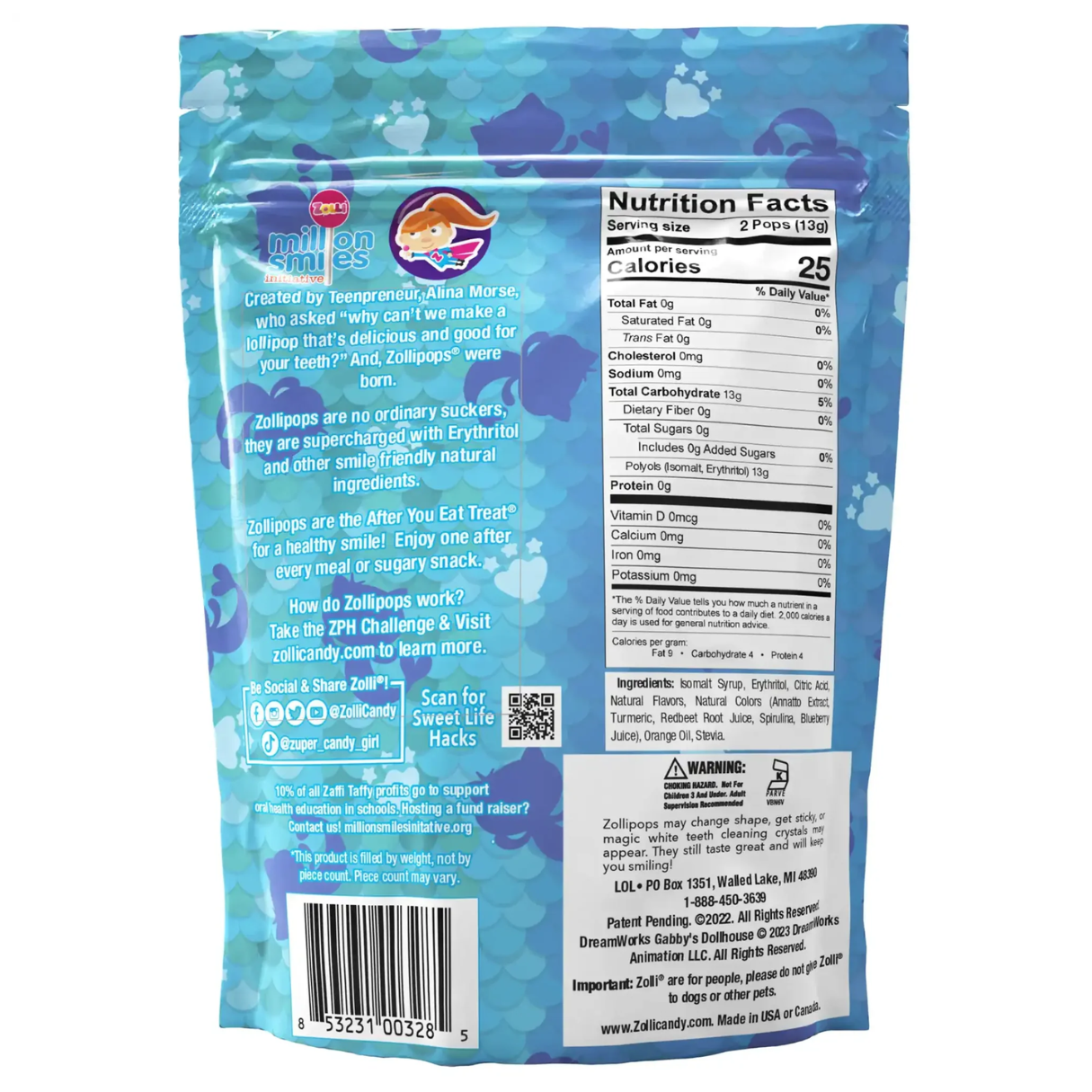 Elevate treat time with Zollipops Original Gabby’s Dollhouse Limited Edition — a pack of 24 sugar-free lollipops packed into a 5.2-ounce re-sealable pouch, inspired by the whimsical world of Gabby’s Dollhouse. These lollipops deliver natural fruit flavors (including grape, raspberry, orange, strawberry, cherry, and pineapple) without using any artificial dyes, making them safe for picky eaters, allergy-sensitive kids, and classroom sharing. Each lollipop is crafted with tooth-friendly ingredients like erythritol, stevia, and isomalt syrup that help neutralize mouth acidity while delivering just about 25 calories per serving. Vegan, gluten-free, dairy-free, nut-free, non-GMO, and keto-friendly, these delightful treats are perfect for when you want something sweet without compromise. Whether as a reward, snack, or party favor, the Gabby’s Dollhouse design adds charm, and the “zero sugar, no artificial dye” promise gives peace of mind to parents, teachers, and dentists alike.